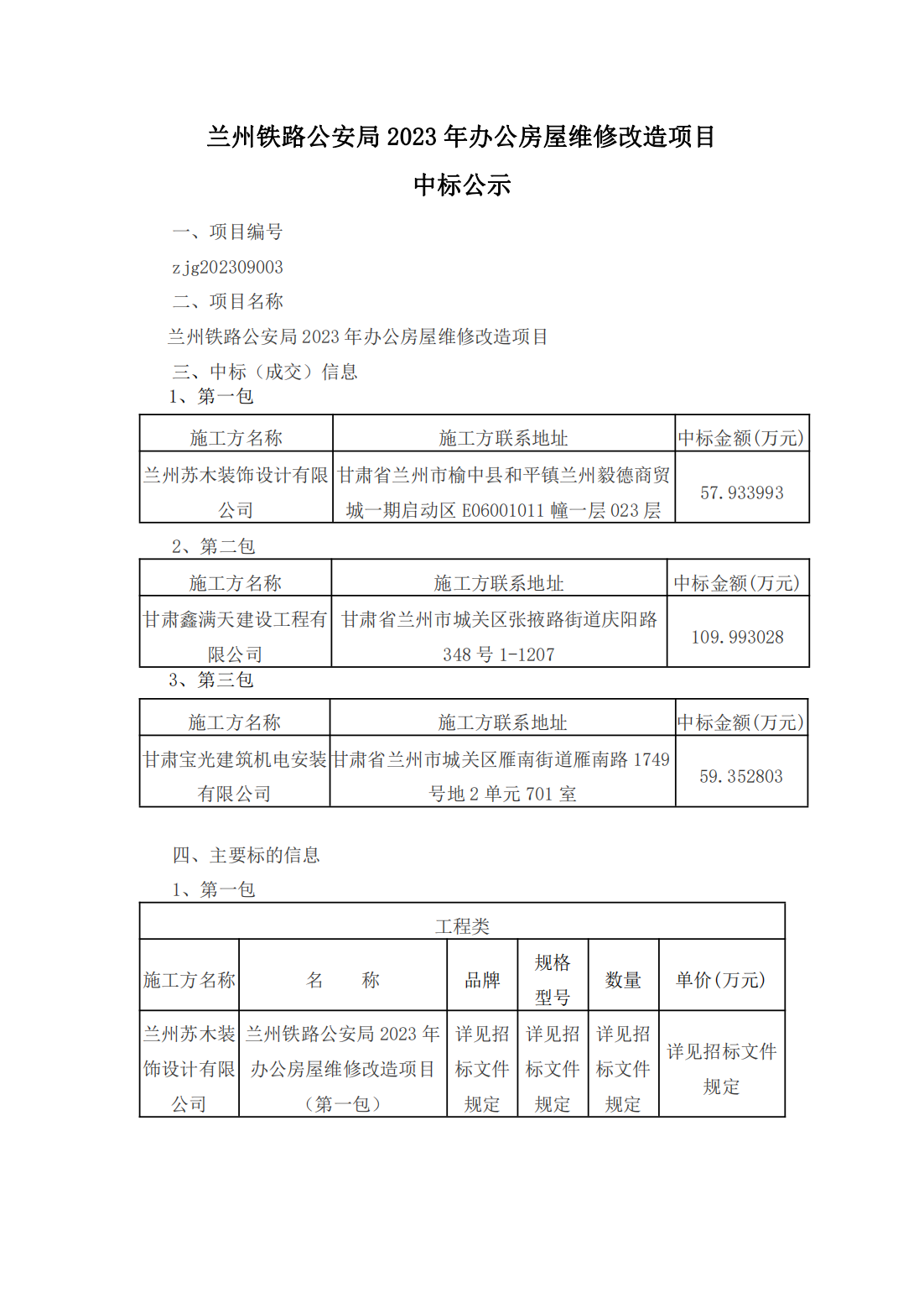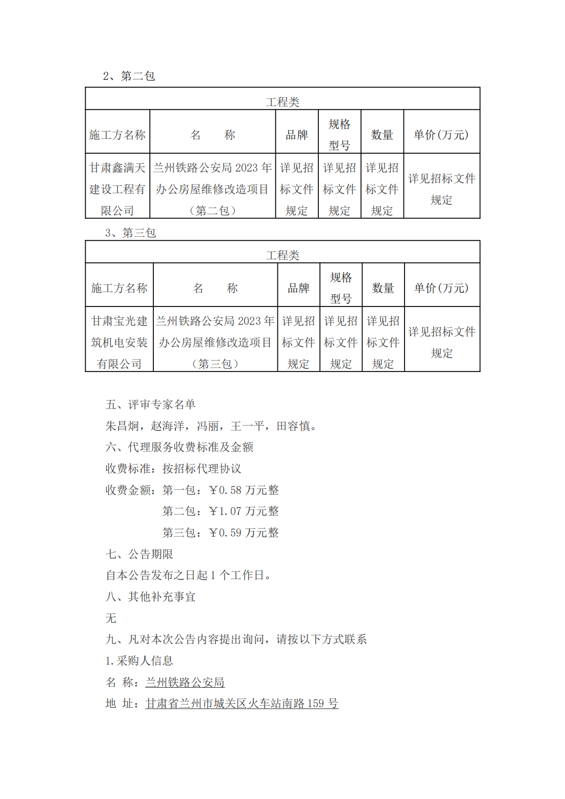 兰州铁路公安局2023年办公房屋维修改造项目中标公示