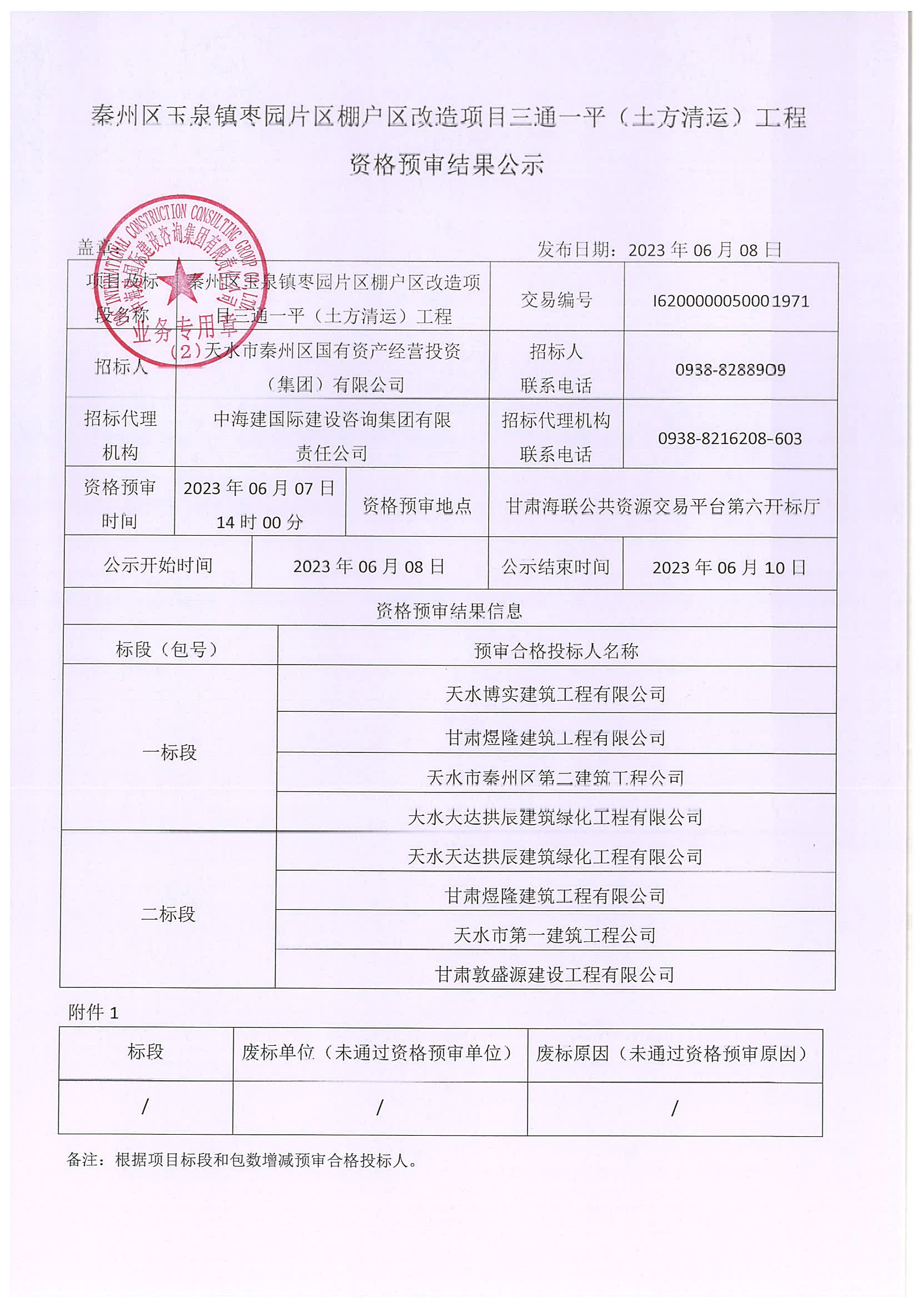 资格预审结果公示